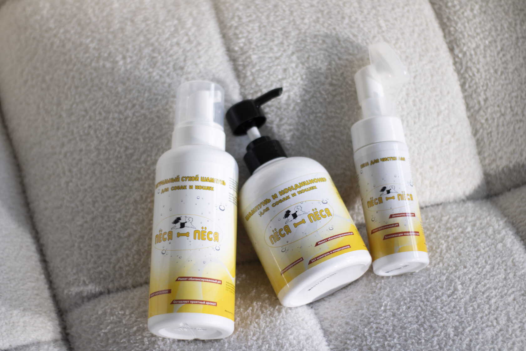 У собак кожа нейтральная, у людей — кислотная. Неподходящий pH может вызвать зуд. Поэтому формулы «Пёся-Пёся» адаптированы под физиологию питомца.